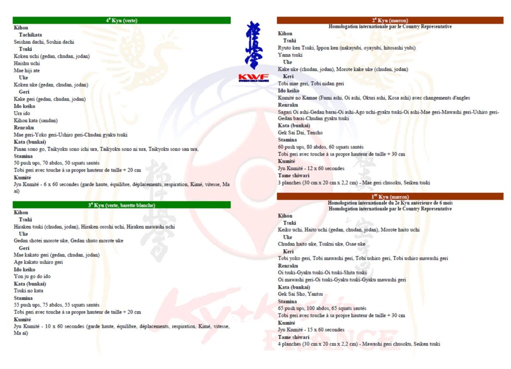 Kyokushin Karate is built upon a balanced and rigorous system of training, ensuring that practitioners develop both internal strength (discipline, focus) and external power (physical ability, technique). Our curriculum follows the global standards of the Kyokushin World Federation (KWF).